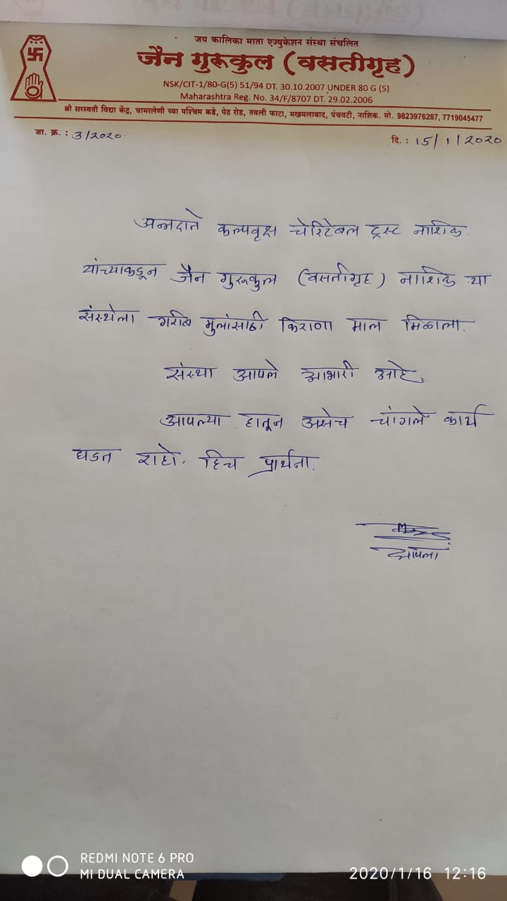 Grocery Distribution at Jain Gurukul