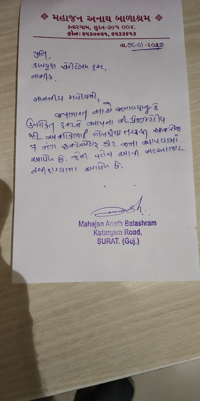 Receipt letter from ZP School