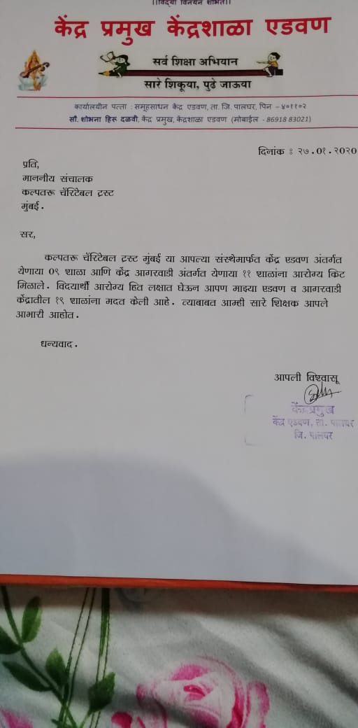 Medical Kit receipt Letter